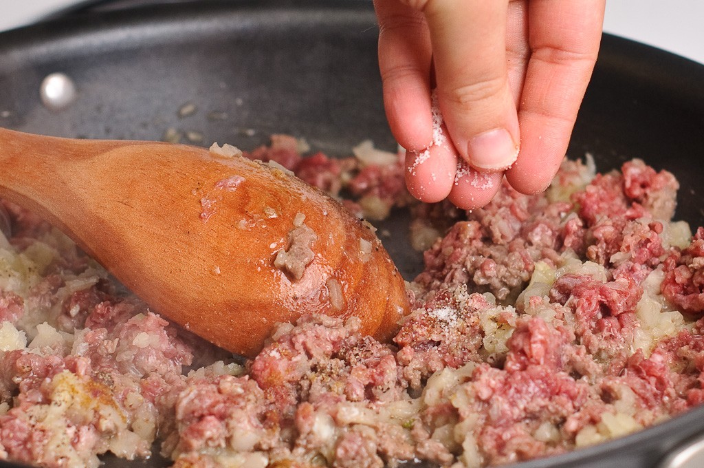 - 10 أوقية من اللحم المفروم .