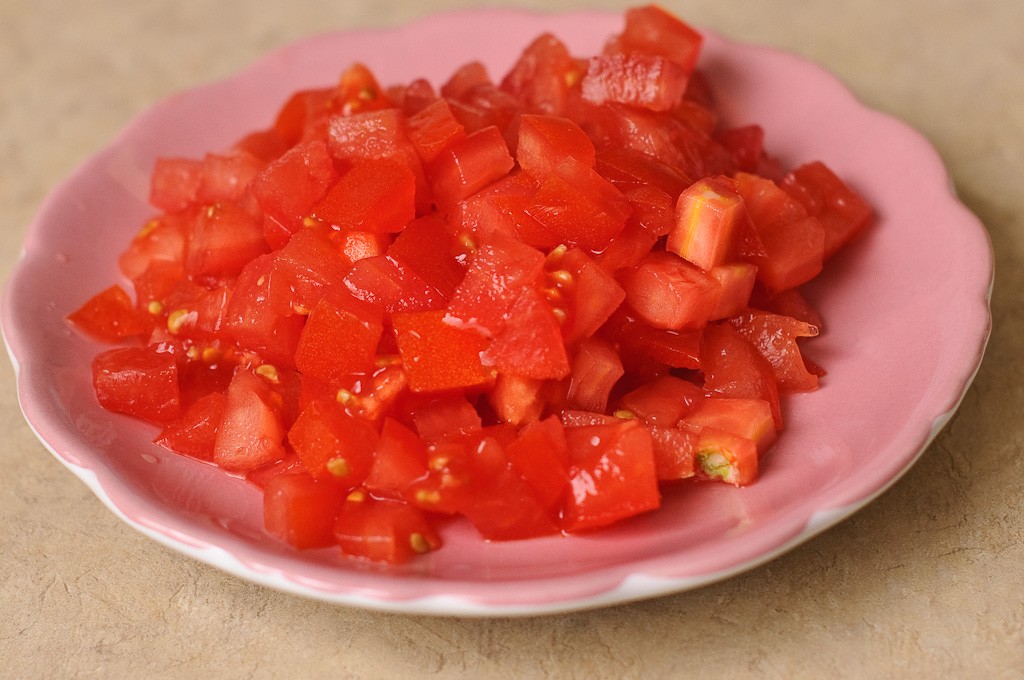 - 1 كوب متوسط الحجم من مكعبات الطماطم